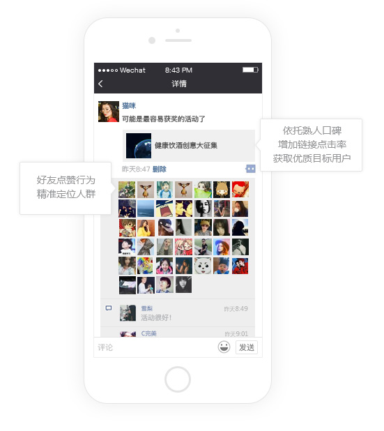 基于朋友圈红人画像进行定位,依托好友关系圈进行广泛传播