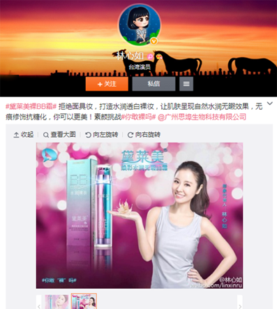 微博大V发布品牌推广图文广告,以粉丝为载体进行衍生传播,一呼百应,影响力引发关注